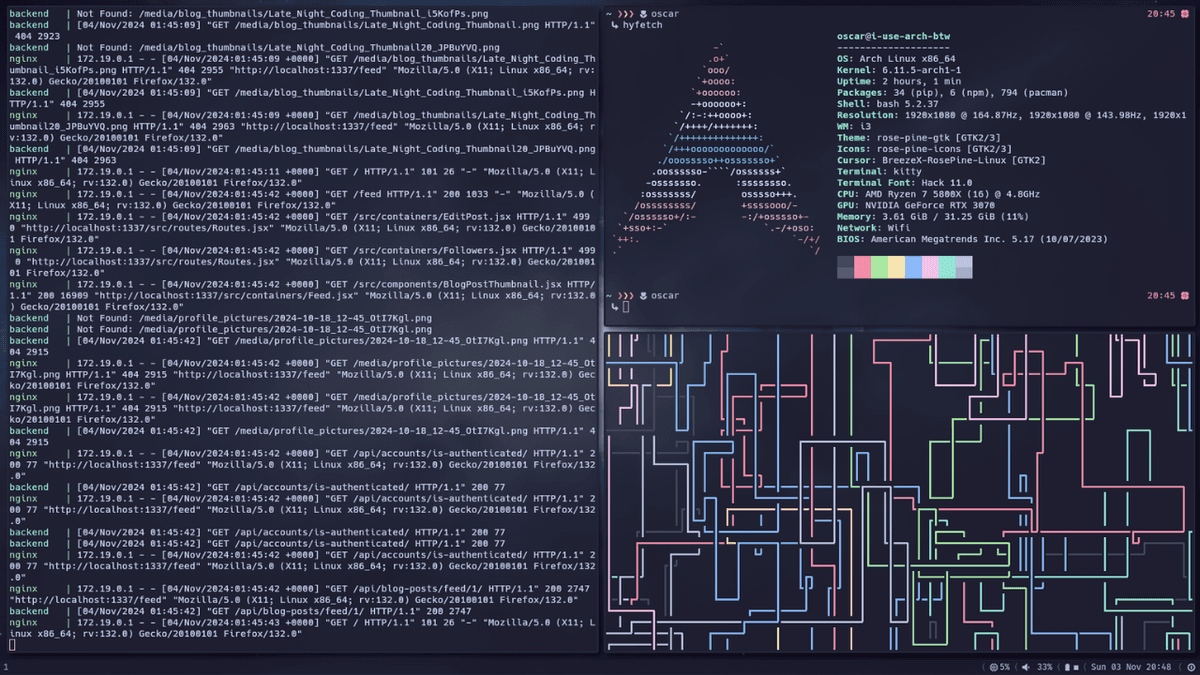 I really like cars. Consequently, I spend a lot of my free time racing/driving virtually. I own a racing wheel (nothing fancy, but I'm not complaining!) and play Assetto Corsa, BeamNG Drive, Dirt Rally 2.0, and more! Here's a short clip of me "rallying" a Porsche 911 Weissach on an Assetto Corsa touge map (look at that beautiful slide @ 0:20).